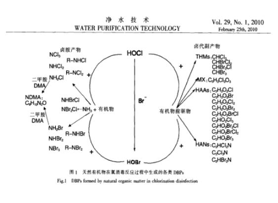 看起來我們只是做了一步消毒,實(shí)際上天然有機(jī)物在氯消毒反應(yīng)過程中發(fā)生了什么?下面這張圖一看,就一目了然了。